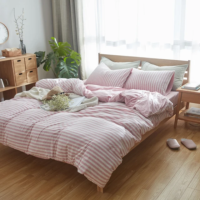 4pcs 100% Cotton pink stripe duvet cover set Nice Quality Jersey Knit doona covers queen king